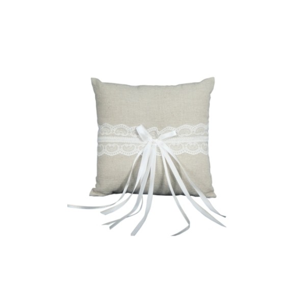 Este cojín de alianzas de 19x19cm.tiene un diseño muy romántico.
