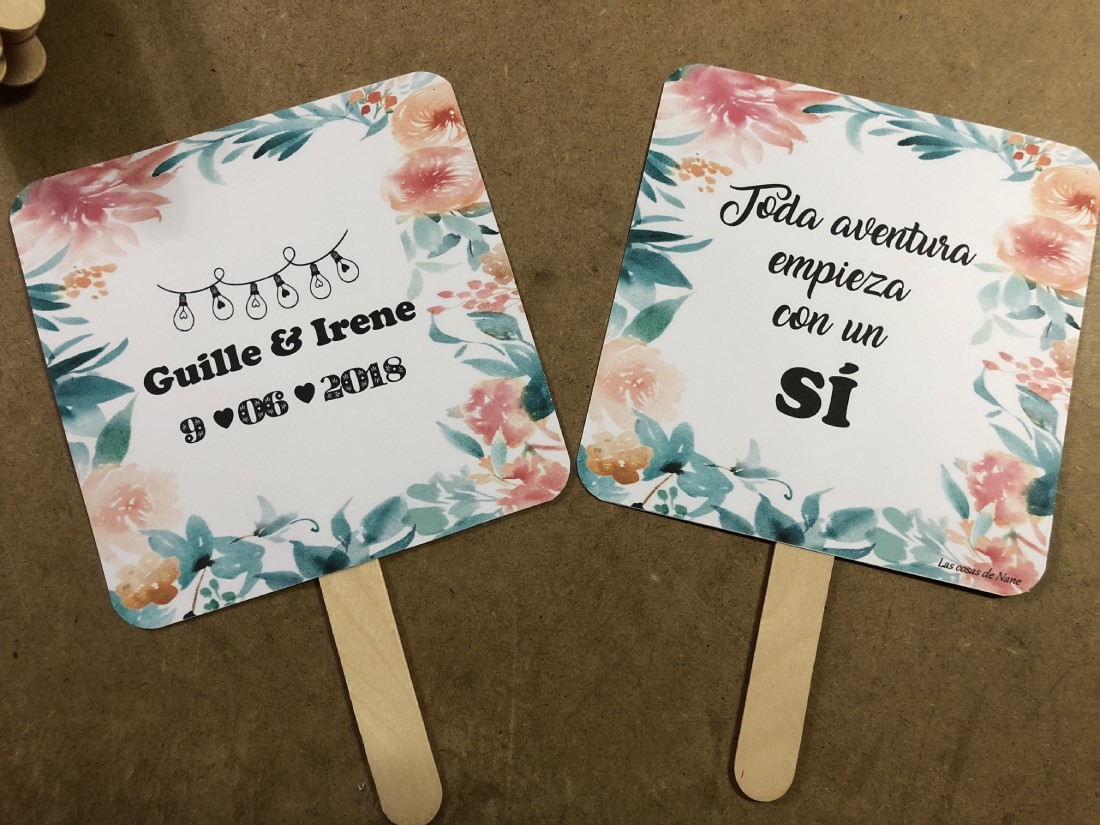 Pai pai boda flores acuarela verde y naranja
