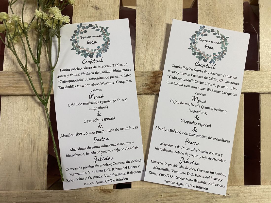 Informa del menú del banquete de boda y se pone sobre el plato de cada invitado