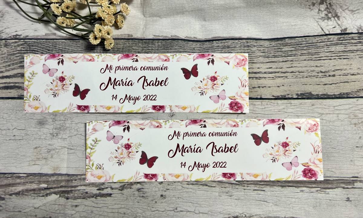 Pegatinas para personalizar y decorar las botellas de agua para bodas, bautizos, comuniones o fiestas de cumpleaños